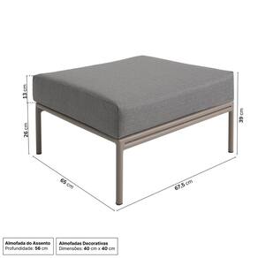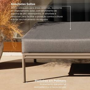 Com um design moderno e cores cuidadosamente selecionadas, a Linha Refúgio cria um ambiente acolhedor e elegante, onde família e amigos podem desfrutar de momentos inesquecíveis de descanso e relaxamento. Encontre seu refúgio perfeito e transforme seu espaço externo em um verdadeiro oásis de conforto e estilo. Acompanha Almofadas extras: Não Almofada do assento: Removível Almofada do encosto: Removível Altura do assento até o chão: 39 cm Altura do Encosto: 41 cm Altura dos Pés: 26 cm Ambiente Principal: Jardim e Varanda Cor: Champanhe/Cinza Mesclado Cor do Produto: Champanhe/Cinza Mesclado Estilo de Braço: Sem Braços Itens Inclusos: Estrutura em Aluminio e almofadas de Encosto e Assento Linha ou Coleção: Linha Refugio Manual de Montagem e Instalação: https://product-hub-prd.madeiramadeira.com.br/932598/documents/0c773268-0ff0-417e-8ade-3fc6aef5811e2237998476017240713549141.pdf Material da Estrutura: Alumínio Material dos Pés: Alumínio Modelo: Sofá Fixo Montagem Flex: Não Necessita Montagem: Não Origem do Produto: Nacional Peso: 6 kg Pet Friendly: Não Possui Apoio para Braços: Não Possui Percintas Elásticas: Não Possui Pés: 04 Possui Rodízio: Não Recomendações de Uso, Manutenção e Limpeza: Para limpar tecido Acqua Block, use água morna e sabão neutro. Esfregue suavemente com pano macio e enxágue. Evite produtos agressivos. Resistente à Chuva: Sim Suporta Até (kg): 100 kg Tecido Predominante: Acquablock Tipo de Encosto: Fixo Tipo de Mola: Não Possui