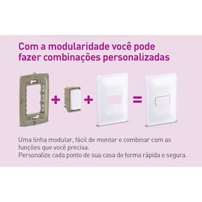 - Acabamento branco brilhante e sem parafusos; - Uma linha com diversas opções de funções para compor a combinação necessária; - Ajuste gradual da placa ao suporte proporciona perfeito acabamento entre placa e parede; - Teclas largas são mais ergonômicas e suaves no acionamento;