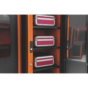 Estrutura com paredes reforçadas. 1 porta com abertura de 100. Possui uma prateleira interna removível. Capacidade de carga da prateleira: 60 kg 5 Pés com regulagem de altura para melhor nivelamento do armário no piso. Compatível com os Tampos Tramontina PRO 44954/025, 44954/026 e 44954/027. Acompanha 4 Parafusos Sextavados M8 x 35 mm, 4 arruelas lisas M8 interno 8,30 mm e externo 17 mm e 4 Buchas de fixação M8 x 19 mm. Porta com tranca eletrônica. Abertura das bancadas por meio eletrônico através do cartão de acesso com frequência de 13.56 MHz. Conector Painel C14 para ligação na tomada elétrica 10A 250VAC~. Conector painel C13 para interligação com outros armários 10A 250VAC~. Cabo de alimentação em cobre 3 X 0,75 mm comp. 3000 mm Isolação em PVC preto 65 graus 250VAC 10A com plug, utilizado para ligar os organizadores na rede elétrica. Cabo de alimentação em cobre 3 X 0,75 mm comp. 600 mm Isolação em PVC preto 65 graus 250VAC 10A C13 - C14 com plug 90 graus supply AC, utilizado para interligar os organizadores.Contato para projetos especiais: modular.gar@tramontina.com