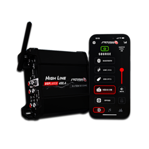 ESPECIFICAÇÕES TÉCNICAS Controle total por aplicativo em seu smartphone Equalizador de 6 bandas Modo de ajuste para carro e caixas acústicas CARACTERÍSTICAS HL400.4 DSPLAYER 2 OHMS Compatível com controle de longa distancia stetsom alcance control Conectividade RCA, Fio, Usb, Bluetooth 5.0, Cabo Optico(para ligar em TVs) e Radio Fm Número de Canais 4 Potência RMS 400W Potência RMS em 2 Ohms 13,8V 4 x 100W Potência RMS em 4 Ohms 13,8V 4 x 70W Potência RMS em 2 Ohms 14,4V 4 x 105W Potência RMS em 4 Ohms 14,4V 4 x 70W Potência 13.8V Bridge 4 Ohms 2 x 200W Tensão de Alimentação 9V a 15V DC Resposta em Frequência 20Hz a 20KHz Sensibilidade de Entrada RCA: 250mV HIGH:1KOhms Impedância de Entrada RCA: 5KOhms HIGH: 1KOhms Impedância Mínima de Saída STEREO 2OHMS E BRIDGE 4OHMS Consumo com Sinal Musical 16,5A Consumo com Sinal Bass 33A Dimensões (A x L x C) mm 50 x 125 x 139 mm Peso Kg 0,5 Kg
