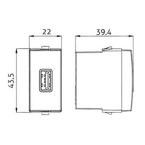 Módulo Tomada Carregador USB-A MarGirius Sleek 1A 5W Preto Ebony
