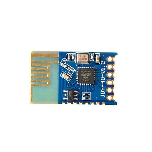 O Módulo Transceptor JDY-40 2.4G possui 8 pinos GPIO para entrada e saída de dados e é capaz de realizar comunicação bidirecional sem fio a uma frequência de 2.4Ghz e alcance de até 120 metros em espaços abertos, sendo ideal para projetos de automação e controle remoto de dispositivos. O controle do módulo é realizado por interface RS232 TTL através dos pinos RX e TX da placa.