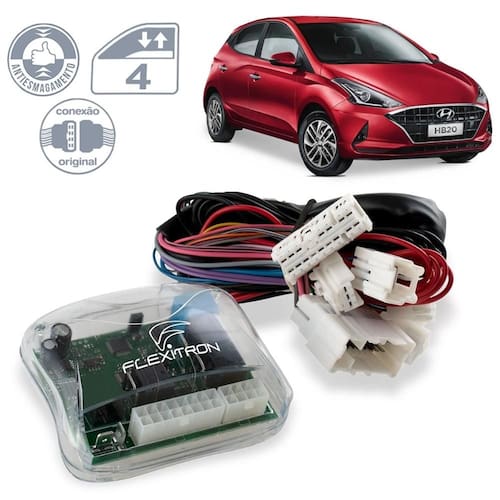 O módulo Flexitron dedicado para Hb20, tem como função a automação dos vidros elétricos, proporcionando conforto e segurança total aos motoristas e passageiros. Em um só dispositivo, com conexões originais, conta com um Fechamento e abertura dos Vidros Elétricos com sistema Antiesmagamento. O módulo irá auxiliar os motorista com a função one touch, permitindo abrir e fechar os vidros, com apenas um click os vidros sobem automaticamente, sem a necessidade de ficar apertando o botão do vidro várias vezes.