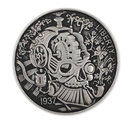Material: cobre Peso: 35 g Tamanho: 3,8 cm Embalagem: 1 x CoinIntricate Steampunk Design: Esta moeda comemorativa apresenta um design mecânico detalhado de caveira, combinando a estética steampunk com elementos históricos, incluindo engrenagens, cachimbos e flores, todos lindamente esculpidos. Construção em cobre de alta qualidade: feita de cobre durável com acabamento prateado, esta moeda combina força e elegância, tornando-a uma adição valiosa a qualquer conjunto de colecionador. Perfeita para colecionadores: com 38 mm de diâmetro, esta moeda de edição limitada mostra o ano de 1937, oferecendo uma combinação perfeita de apelo vintage e design artístico para aqueles que apreciam artesanato complexo. Detalhes esculpidos exclusivos: o design esculpido em 3D destaca o crânio mecânico e os elementos circundantes com profundidade e clareza impressionantes, tornando-a uma peça atraente para exibição ou conversa. Colecionável versátil: esta moeda é ideal para exibição, troca ou como parte de uma coleção temática. Seu design exclusivo e significado histórico o tornam indispensável para entusiastas do steampunk, moedas vintage e memorabilia artística.