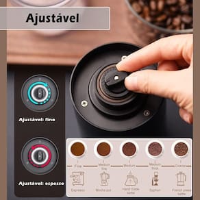 Moedor de café elétrico,automático portátil moedor de grãos de cafe, ajustável multi moagem Moedor de rebarbas eletrico tritura consistentemente os grãos de café entre as rebarbas cônicas de cerâmica. Este processo também retém o sabor e o aroma naturais do café melhor do que um moedor de lâminas. O funil pode moer até 1 onça/30 gramas suficiente para 5 xícaras de grãos de café em um único lote O moedor de café elétrico, tamanho pequeno, peso leve, fácil de transportar. Muito adequado para viagens, em casa ou uso ao ar livre. É simples e conveniente de usar, você pode fazer uma xícara de café suave em seu tempo livre . 1. Mini moedor de café portátil aumenta a capacidade do recipiente de moagem e pode moer 30g de grãos de café de cada vez. Ajustável configuração multi moagem,para espresso gotejamento despeje sobre prensa francesa. Café gelado. 3. Esta retificadora adota carregamento USB, não há necessidade de conectar, também pode ser Utilizado ao ar livre, pode ser Utilizado com um banco de carregamento, notebook, etc. 4. Esta retificadora adota motor de cobre puro de baixo ruído, a revolução é uniforme e estável, e a bateria de lítio de 1800 mAh embutida tem forte resistência. 5. Esta máquina de moagem está equipada com sensor de resistência inteligente, desligamento automático após moagem, seguro e conveniente. 6. Esta máquina de moagem adota estrutura em camadas, exceto a máquina principal, outras peças podem ser lavadas diretamente, muito conveniente. Especificações: Material: Cerâmica + ABS Cor: Preto / Branco Engrenagem: Ajustável Fonte de alimentação: USB carregamento,Type-C Bateria embutida: 1800mAh Tamanho do produto: 8.0 x 8.0 x 18.6cm Peso do Produto: 430g Tamanho do pacote: 20 x 9 x 9cm Lista de pacotes: 1 - Moedor de cafe elétrico 1 - Cabo USB Type-C 1 - Escova