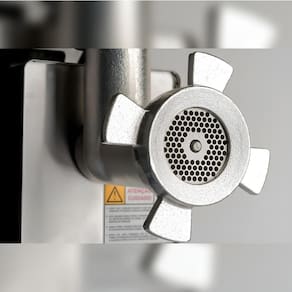 Ideal para pequenos comércios, açougues e restaurantes que buscam alto desempenho e praticidade no dia a dia. Com estrutura em aço inox, ele garante durabilidade, higiene e facilidade na limpeza, atendendo às exigências do setor alimentício. O redutor possui quatro engrenagens helicoidais extremamente resistentes e silenciosas, que trabalham imersas em banho de óleo, proporcionando grande durabilidade. Possui um sistema de segurança instalado, com proteção fixa de bloqueio mecânico, que impede o acesso dos membros superiores do operador à entrada do bocal, proporcionando assim maior segurança. O Moedor acompanha 01 disco de 5mm e 01 cruzeta simples fabricados em aço inox com tratamento térmico para maior durabilidade.