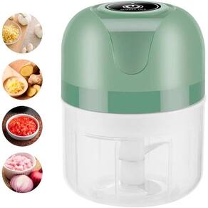 Mini processador de alimentos portátil com capacidade de 250ml. Possui três lâminas de aço inoxidável afiadas para triturar alho, pimenta, gengibre, frutas e outros alimentos. Operação simples com um único botão. Fácil de limpar e à prova d'água (IPX8). Feito de ABS, PC e aço inoxidável.Acessórios