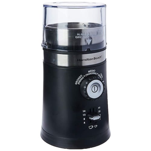 Esta novidade chegou para agradar não só os amantes de café, como os amantes de temperos e outras delícias que podem ser feitas com vários tipos de grãos. É só ajustar ao seu gosto e apertar o botão para o funcionamento automático.Características:Quantidades e espessura de moagem ajustáveisFuncionamento automáticoCâmara de moagem removívelMói café e temperos secosInclui pincel para limpezaCapacidade para 41 xícaras 50 ml Recipiente de moer removível, facilita o escoamento e a limpeza, podendo ir à lavalouçasMúltiplas configurações de espessura de moagem permitem personalizar seu caféMãos livres: pressione para ligar e o desligamento é automáticoConfiguração de quantidade de xícaras com alavanca deslizante fácil de usarInformações técnicas Marca: Hamilton Beach Modelo: 80393BZ220Voltagem: 220VMaterial: Plástico e Aço InoxRegistro no Inmetro: 0349002/2017Dimensões do pacote: 22,6 x 13,2 x 13,2 cmDimensões do produto: 119 x 113 x 20,4 cm ; 4,54 gPeso do envio: 1 KgCapacidade: 41 xícaras 50 ml Cor: Preto/InoxConteúdo da embalagem 01 Moedor Elétrico01 Tampa01 Recipiente Removível para Moagem01 Pincel de LimpezaManual de InstruçõesSobre a marcaSempre comprometida com a completa satisfação do cliente e com a inovação, a Hamilton Beach faz parte das mais diversas famílias há mais de 100 anos, trazendo novos produtos, recursos, estilos e cores. A marca número 1 na categoria de eletroportáteis nos Estados Unidos chegou no mercado brasileiro oferecendo 3 anos de garantia e apresentando batedeiras, liquidificadores, cafeteiras, ferros de passar e vários outros produtos para inspirar todo mundo a cozinhar e se questionar: Por que ninguém pensou nisso antes?