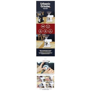 Características 1 Fácil desmontagem e limpeza. Pode ser desmontado e limpo manualmente sem chave de fenda A tremonha e o corpo podem ser facilmente separados. 2 Moagem uniforme e estável 20 níveis de moagem ultra fina uniforme e detalhada qualquer tipo de café pode ser expresso Uso de broca de aço inoxidável de 60mm para manter o sabor dos grãos 3 Design sofisticado Design sofisticado com cores pretas puras e acabamento manual Interruptor frontal maximiza a eficiência do trabalho. 4 Interruptor de sobrecarga montado para evitar o superaquecimento do motor. 5 Extratores antiestáticos evitam que o pó voe e se aglomere. Modelo Urbanic 070 Grinder Tamanho , 200 130 Peso , 3,85kg Rebarba 60mm Plana Tremonha , 250g Voltagem , 110v 50 60Hz Potência , 250w
