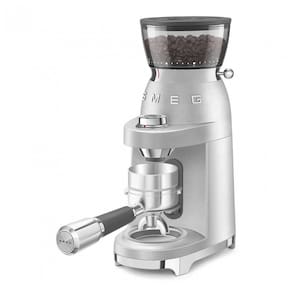 Moedor de café elétrico Smeg inox para espresso com mós cônicas em inox, 30 ajustes de moagem e funil 250g, 110V