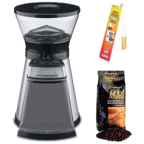 Tremonha de capacidade de 226gr totalmente programável seletor de xícara de 1 a 14 para sua quantidade precisa de café seletor de moagem de 18 posições, de ultrafino para café expresso a extra grosso para a imprensa francesa. Câmara de moagem removível, motor de serviço pesado, zenamento de cabos. Moedor de rebarba cônico livre de BPA proporciona uma moagem uniforme e de sabor completo sem aquecer os grãos. Cor Prata. O elegante moinho de rebarba cônico programável Cuisinart em aço inoxidável escovado produz resultados perfeitos todas as vezes para todas as suas necessidades de café com 18 configurações, desde grosseiras para a sua imprensa francesa até finas para café expresso rico. O moedor de rebarba cônico produz uma moagem uniforme sem sacrificar os óleos naturais de seus grãos de café para obter resultados ricos e saborosos. Com uma tela LCD de fácil leitura, mostrando a hora, a precisão e o número de xícaras, o café é mais fácil e fresco do que nunca