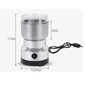 Moedor triturador de grãos com recipiente em aço inox. Potência de 150W. Voltagem 220V. Adequado para moer grãos de café, amendoins, temperos, grãos de pimenta e cereais. Os sólidos devem ser sempre secos, não podem conter água.