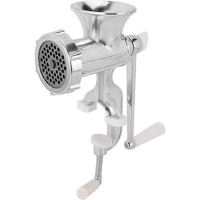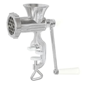 Moedor de Carne e Alimentos Multiuso Manual n10 Alumínio Moedor De Carne Legume Milho Alimento Manual em Alumínio Boca N 10 -material: Alumínio. -máquina desmontável. -garra de fixação na mesa. -número 10. -dimensão: 27 x 11 x 26,5cm. conteúdo: -1 Máquina de moer. aplicação: ideal para preparar hambúrguer, almôndegas, carne moída e muito mais. Marca: Não Informado