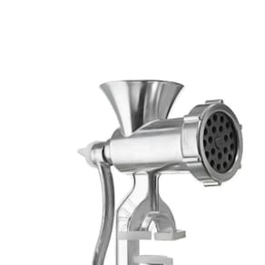 Moedor de carne e embutidos manual alumínio prata mimo style o moedor de carne é super resistente e durável, conta com o corpo e suas partes todas de aluminio em uma peça única. O moedor de carnes é manual, não necessita de pilhas ou baterias para moer, basta girar o cabo. Esse processo retém muito mais o sabor da carne, bem como a nutrição da mesma e além de tudo, não danifica a fibra da carne e ainda ser utilizado para fazer salsichas. - conteúdo 1 moedor