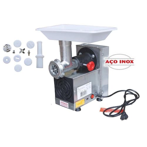 Especificações técnicas do Moedor Elétrico Semi Profissional Bigolar Marca: Bigolar; Modelo: 1450; Tensão: Bivolt; Consumo: 0,500 kW/h; Funcionalidade: Moedor de carne e Extrusor de massa;