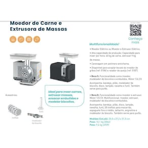 Produto multifuncional, mói carne, extrusa massas, faz biscoitos e ainda embutidos;