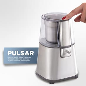 - Potência: 220W (110V) e 180W-220W (220V) - Capacidade: até 60g - Tipos de moagem: fino, médio e grosso - Corpo e lâminas em inox - Tampa transparente para visualização - Trava de segurança - Base antiderrapante - Reservatório removível para lavagem - Certificação INMETRO: UL-OCP-0029 - Consumo: 0,000544 kWh (110V) e 0,000439 kWh (220V) - Dimensões: 20,8cm x 12,7cm x 20,8cm - Peso: 980gCom corpo e lâminas em inox, o moedor garante durabilidade, resistência e facilidade de higienização. Seu reservatório removível facilita a limpeza e o uso no dia a dia, enquanto a tampa transparente permite visualizar o ponto exato da moagem.