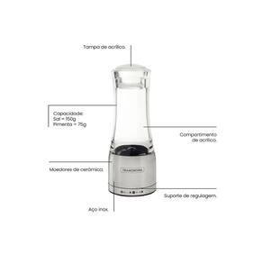 Capacidade: Sal grosso - 150 g / Pimenta - 75 g.