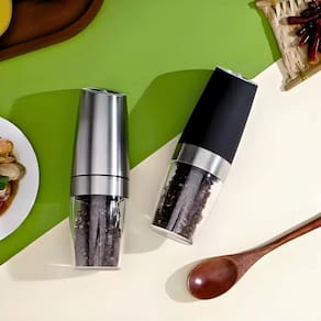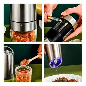 Diga adeus às dificuldades de moer pimenta e sal manualmente. Experimente o Moedor de Pimenta, Sal e Tempero Elétrico Automático Por Gravidade e transforme a maneira como você tempera seus alimentos