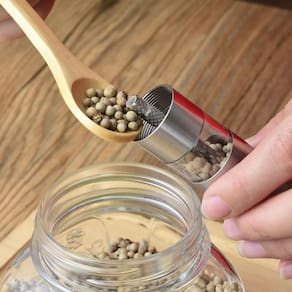 o moedor manual com visor é ideal no preparo de receitas para dar aquele toque especial no tempero dos alimentos. Composto por uma haste moedora bastante confiável e resistente em aço inoxidável, ele é completamente desmontável para limpeza. O ajuste da serrilha é fino e permite que a pimenta saia do moedor muito bem moída e sem pedaços. Para utilizar basta colocar a pimenta e acionar o moedor fazendo um movimento de aperta e solta em sua parte superior. Além de ter uma boa durabilidade, o moedor manual tem um design moderno e inovador se tornando um utensílio fundamental na cozinha. Características: - possui visor - compacto e portátil - material resistente e durável - e doméstico