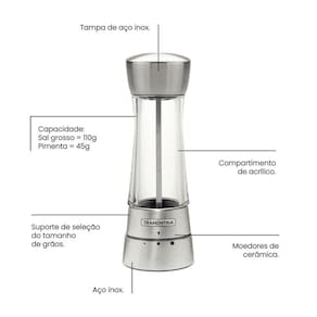 - Modelo: Moedor de Sal ou Pimenta Tramontina em Aço Inox