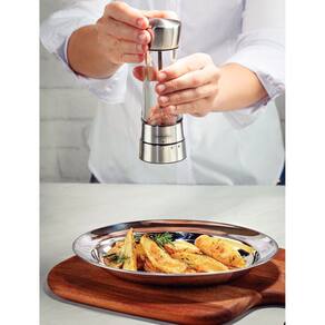Ideal para moer pimenta do reino branca ou preta, pimenta rosa, pimenta Jamaica, pimenta síria, pimenta calabresa seca, sal entre outros. Uso doméstico ou profissional. Desenvolvido em aço inox e acrílico, o utensílio possui engrenagens de alta resistência proporcionando maior durabilidade.