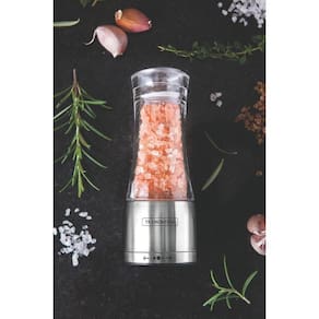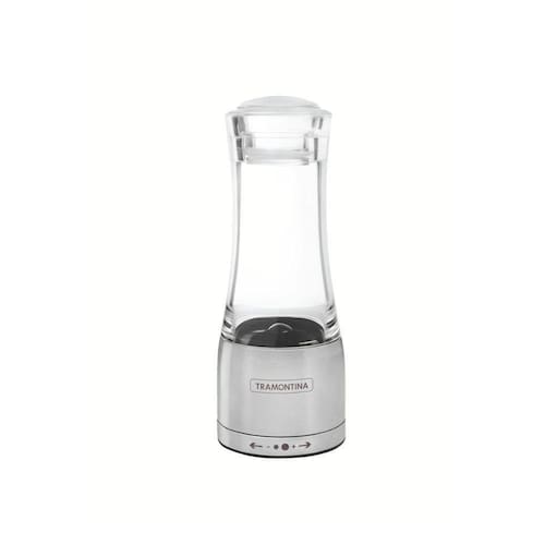 Com este Moedor Tramontina Sal ou Pimenta em Acrílico e Aço Inox com Moinho em Cerâmica, ficou muito mais prático temperar seus alimentos. Com design elegante, possui engrenagens de alta resistência e durabilidade. Tem regularem do tamanho do grão para você usar na medida certa.