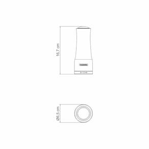 Mais informações - Prático e elegante!Possui engrenagens de alta resistência, proporcionando maior ajuste de moagem, possui regulador de tamanho de grão, para que seja ajustado conforme seu gosto.Garantindo higiene e beleza.Material: acrílico + aço inox.Moedores de cerâmica.Compartimento de acrí de acrílico.Capacidade:Sal = 150 GPimenta = 75 G