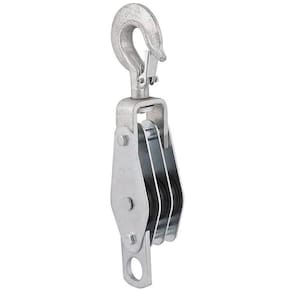 O gancho possui trava para maior segurança e polias de nylon de alto impacto, com uma durabilidade excelente.