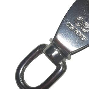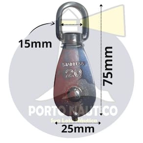 INFORMAÇÕES ADICIONAIS: Material: Aço inox 316. Tamanho: N20. Carga máxima: 75 kg. Contém alça destorcedor. Alta resistência e durabilidade. Projetado para pendurar objetos de peso para aliviar cargas Aplicação: Amplamente utilizado no esforço de tração de cabos de aço ou outras ferramentas de cabos. Uma corda, cabo, correia ou corrente geralmente passa sobre a roda e dentro da ranhura, se houver