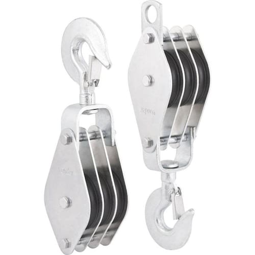 Indicado para elevação de carga. Não indicado para uso em andaimes de construção civil. Não utilizar cabo de aço.Possui acabamento zincado, proporcionando maior resistência a oxidação/corrosão e gancho com trava proporcionando maior segurança.Material do gancho do moitão:Aço estampadoTipo do gancho do moitão:Com trava de segurançaDiâmetro externo da roldana do moitão:45,0 mmCapacidade máxima de carga do moitão:650 kgNúmero de roldanas do moitão:3Diâmetro da corda indicada para moitão:10,0 mm Ean: 7893946189532