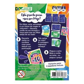 Em Mojo, sorte, estratégia e um toque de magia entram em jogo. Seu objetivo é simples: marcar o mínimo de pontos possível. Para isso, descarte cartas, combine cores e acompanhe a contagem regressiva. Mas fique esperto… a carta Mojo pode virar tudo num piscar de olhos – para o bem ou para o mal!