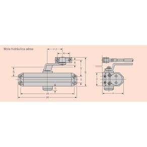 Mola Aérea Hidráulica para Porta 850mm 45Kg MA100/2 PrataIdeal para instalação em portas de madeira ou metal, recomendada para ambientes como: cozinhas, banheiros, lavabos e áreas de serviço. Principais funções: Fecha a porta sozinha, suavemente e sem ruídos; Mantém a porta fechada; Elimina correntes de ar; Isolamento de ambientes; Economia de energia; Evita a propagação de ruídos e odores indesejáveis; Possibilida a redução de propagação de fumaça e retarda a propagação de fogo; Evita acidentes; Cor: Prata Largura Máxima da porta: 850mm Peso Máxima da porta: 45Kg Potência: MA200 Número 2 Tipo de Braço: Reversível pode ser instalada em portas à esquerda ou à direita, não sendo necessário inverter o mecanismo Duas válvulas independentes: uma controla a velocidade de fechamento de 150º até 15º e, a outra, fechamento final de 15º até 0º.Atenção: Imagem meramente ilustrativa, podendo conter alguma diferença em sua tonalidade.