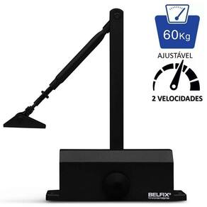 ESPECIFICAÇÕES: - Suporta até: 45 kg - Ajustável em: 2 velocidades - Ângulo de abertura: de 0° a 90° e 150° - Para portas de: 600 mm a 1200 mm de largura - Mantém a porta aberta em ângulo de 90° graus (se existir a presilha de porta *presilha não acompanha o produto) - Cor: Preto
