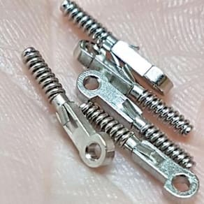 Mola + vendida haste óculos md 210 1,2 mm furo 100 unid. Cor: cinza Valor referente a lote com 50 pares de molas. O furo desta mola é para parafuso 1,2 mm Marca: Terceiros