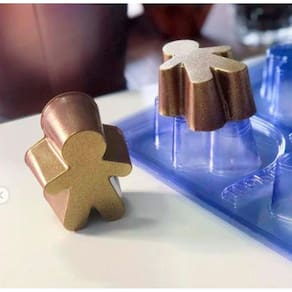 Molde fofuxo que chega com tudo para gerar tendências nesse natal. As famosas bolachinhas natalinas no formato de bonequinho agora com a casquinha de chocolate. Chocolate por chef.Rosesukada Arraste para o lado . Ficha técnica do produto: Dimensões da peça maior: 7,5cm comprimento; 6,7cm largura; 2,5cm altura; Peso da casquinha: 40g Peso recheado: 90g Ref. Do prod.: 85 Especial três partes; Prod. Exclusivo