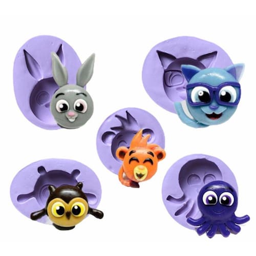 Medida do molde: Sophie: 5.2*6.2cm/ Bunny: 7*5.1cm/ Rick: 4.5*4.5cm/ Pipi: 4.6*6.5cm e Pow: 5.9*5.*9cm