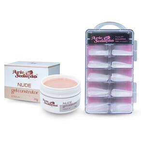 Contém: 01 - Caixa Acrílica com 100 Unidades de Molde F1 Modelo Bailarina Arte Sedução 01 - Gel Construtor Nude 24g Arte Sedução