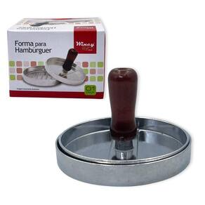 Forma para Hambúrguer Esse molde é perfeito para preparar aquele hamburguer artesanal caseiro e deixá-lo com cara de profissional! Com a carne já temperada, basta colocar uma porção na forma e moldar na espessura que preferir. Pode fazer aquele hamburgão ou até mesmo um smash burguer. Feito em alumínio, garante boa durabilidade, uma limpeza mais fácil e também evita passar odores ou sabores de outros alimentos. ESPECIFICAÇÕES: - Material: Alumínio - Dimensões: 12cm diâmetro - Cabo em madeira CONTÉM: 01 Molde para hamburguer 12cm