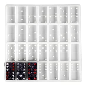 Molde de resina epóxica, 28 cavidades, medidas dominó° em imagens.° Molde de fundição de resina. Feito de silicone de alta qualidade, seguro e flexível, durável e reciclável. Fácil de moldar e fácil de limpar. Resistente ao calor e ao frio, pode ser utilizado no forno, geladeira e micro-ondas.\ nMoldes de silicone: feitos de silicone flexível e de qualidade, moldes lisos e lisos, duráveis e resistentes a rasgos. Não desbotam nem se deformam com o uso repetido.° O molde dominó feito à mão para seus amigos como presente será uma grande surpresa para eles, inovador e consciente. Você pode adicionar alguns ornamentos ao molde ao fazê-lo de acordo com suas preferências,° Fácil de liberação: Você pode remover facilmente o artesanato acabado devido ao material flexível e antiaderente, basta girar os moldes para liberar sua criação. ° Aplicações: conjunto de ferramentas de fundição de capa de notebook grande, adequado para caderno DIY, álbum de fotos, papel, planejadores de documentos, etc. Sua compra inclui: 1 molde de resina epóxica Domino de 28 cavidades