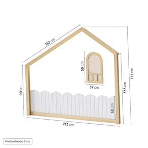 Moldura com Led e Janelinha em Madeira Maciça para Quarto Infantil New Garden Casatema Natural/Branco. Deixe o quarto do seu filho ainda mais especial com a Moldura com LED e Janelinha da New Garden, uma peça encantadora que combina funcionalidade e design. A moldura possui uma estrutura robusta em madeira maciça, garantindo durabilidade e um toque natural ao ambiente. As partes brancas são feitas em MDF com pintura laqueada, proporcionando um acabamento impecável e suave. Um dos destaques é a fita de LED Quente, que contorna a parte superior (telhado) da moldura e emite uma luz quente e aconchegante, ideal para criar uma atmosfera relaxante na hora de dormir ou para iluminar a leitura de histórias. A fixação é simples e segura, realizada por parafusos. Esta moldura com janelinha é a escolha perfeita para adicionar um elemento lúdico e um ponto de luz suave, transformando o espaço infantil em um verdadeiro refúgio de sonhos.