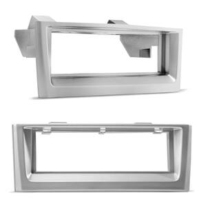 Fabricada em ABS, acompanha moldura intermediária e suportes laterais para fixação. acabamento impecável na cor Prata, utilizado para dar um acabamento perfeito no painel do seu carro após a instalação de um Multimídia ou um DVD automotivo.