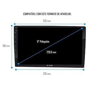 CARACTERÍSTICAS: - Agora você pode instalar outro som no seu veículo sem tirar sua originalidade; - Pode ser utilizada com centrais multimídia e Dvd players de 9 polegadas; - Acabamento impecável na cor Preto fosco com detalhe black piano; - Encaixe perfeito e de fácil instalação/utilização; - Longa durabilidade; - Excelente acabamento.