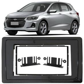 Características técnicas: - Moldura de painel 2 Din; - Compatível com Onix 2020 e Onix 2021; - Cor: Black piano preto brilhante ; - Acompanha aro intermediário e suportes de fixação; - Recomendado para aparelhos multimídia mp5 slim com profundidade de até 7 cm.