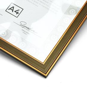Tamanho A4 21 x 29,7 cm adequado para diplomas e certificados padrão Construção sólida e resistente em material duradouro Acabamento clean e minimalista que combina com diferentes estilos Fácil de montar e instalar, valorizando seus documentos com elegância