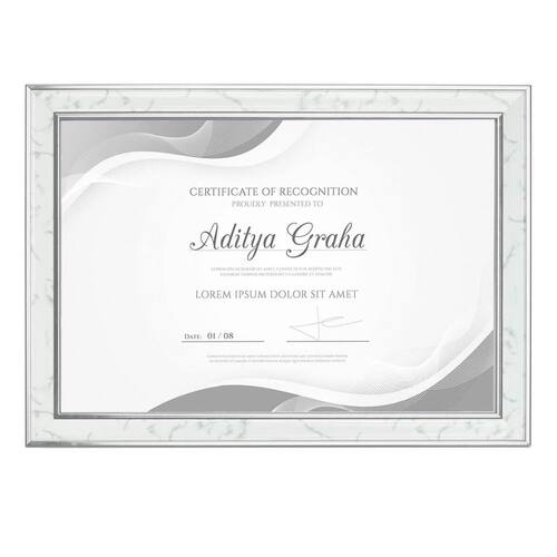 Moldura Porta Diploma A4 Detalhe Marmorizado Metálico 5454 Cor: Prata Valorize os seus diplomas e certificados com a Moldura Porta Diploma A4 Detalhe Marmorizado Metálico. Essa moldura elegante e moderna é o complemento perfeito para destacar seus maiores feitos e conquistas. Feita com um design sofisticado em acabamento de efeito metalizado e marmorizado, ela traz um toque de elegância para qualquer ambiente.