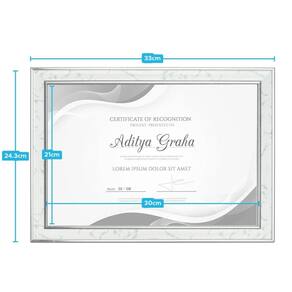 - Tamanho A4 21 x 29,7 cm ideal para diplomas e certificados padrão. - Design moderno e atemporal que combina com qualquer decoração. - Fácil de montar e instalar. - Gancho na parte traseira para pendurar.