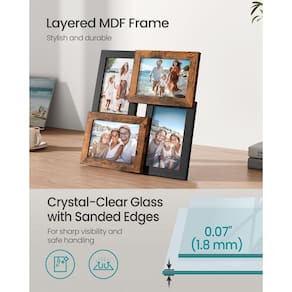 Transforme suas paredes vazias em uma galeria de memórias queridas com molduras de colagem SONGMICS para a parede. Perfeita para mostrar seus momentos, lugares ou eventos favoritos, essas molduras adicionam um toque pessoal a qualquer espaço de vida. Resumo dos destaques desta moldura de colagem: - Inclui 4 molduras interligadas, cada uma segurando uma foto de 10 x 15 cm. - Feita de MDF durável e vidro de alta transparência com bordas lixadas, para exibição clara e manuseio seguro. - Os botões de virar na parte de trás facilitam a troca de fotos. - Ideal para criar uma decoração de parede atraente em salas de estar, quartos ou escritórios. - Um presente significativo para entes queridos em aniversários, feriados ou aniversários. Especificações: - Cor: Cinza preto, marrom rústico - Material: moldura MDF (painel de fibra de densidade média), painel de vidro - Tamanho do produto: 30,5 x 30,5 cm L (30,5 x 30,5 cm) - Tamanho de cada foto: 4" x 6" (10 x 15 cm) - Espessura da moldura da colagem: 0,5" (1,2 cm) - Peso: 0,9 kg Conteúdo da embalagem: - 1 colagem de porta-retratos - 1 kit de acessórios. 1 x manual de instruções (idioma português não garantido). SONGMICS Notas: - Esta moldura de colagem é composta por várias molduras e não pode ser usada separadamente. - Observe que as fotos de amostra nas molduras são diferentes daquelas exibidas na página. - [Capture suas memórias] Desde os rostos de seus entes queridos até ótimos momentos com amigos e reuniões familiares, esta moldura de colagem permite que você exiba uma variedade de momentos maravilhosos. Possui 4 molduras, cada uma com tamanho perfeito para fotos 10 x 15 cm - [Qualidade e clareza combinadas] Feitas de MDF espesso e vidro de alta transparência com bordas lixadas, essas molduras de colagem garantem que suas fotos sejam exibidas em qualidade cristalina, garantindo a segurança durante o manuseio - [Fácil de substituir fotos] Com botões de giro na parte de trás, esta colagem de moldura de foto torna a atualização de suas memórias exibidas sem esforço, permitindo trocas simples de fotos sempre que você desejar um novo visual - [Tela deslumbrante feita sem esforço] Com instruções simples e cada moldura numerada na parte de trás, montar esta moldura de colagem é fácil, aprimorando instantaneamente sua sala de estar, quarto ou escritório com um toque pessoal - [O que você receberá] Um conjunto de molduras de colagem com quatro fotos de 10 x 15 cm para a parede, um presente significativo para seus entes queridos. Observe que as fotos de amostra dentro das molduras que você recebe diferem daquelas exibidas na página