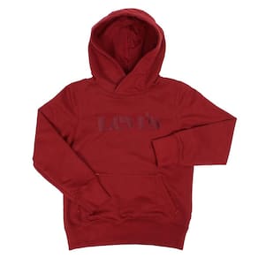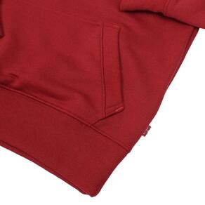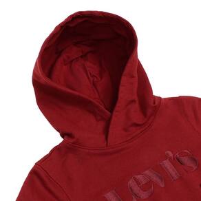 Moletom masculino Infantojuvenil Levi's autêntico fabricado em tecido 50% Algodão e 50% Poliéster na cor Vermelho, possui mangas longas, bolso modelo canguru, capuz, elásticos na barra e nos punhos e detalhe bordado na parte frontal.