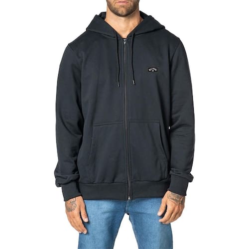 Moletom Billabong 305g com felpa, bolso canguru e capuz, forro em meia malha, capuz com cordão de ajuste, ribana na barra do corpo e nas mangas e etiquetas personalizadas.